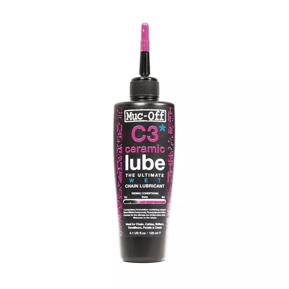 MUC-OFF Wet Lube – C3 Ceramic er det bedste smøremiddel til din cykel kæde. Wet lube er beregnet til vinter halvåret. Denne lube indeholder en ekstra beskyttelse som danner en film uden på din kæde. Din kæde og drivline er bedre beskyttet mod vand og salt så slid minimeres.